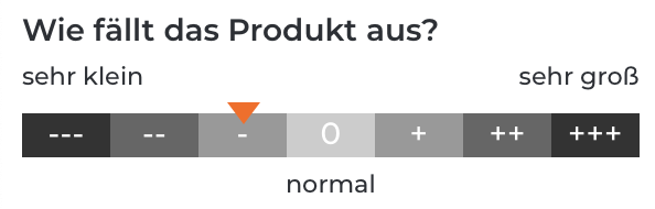(Größentabelle des Herstellers)